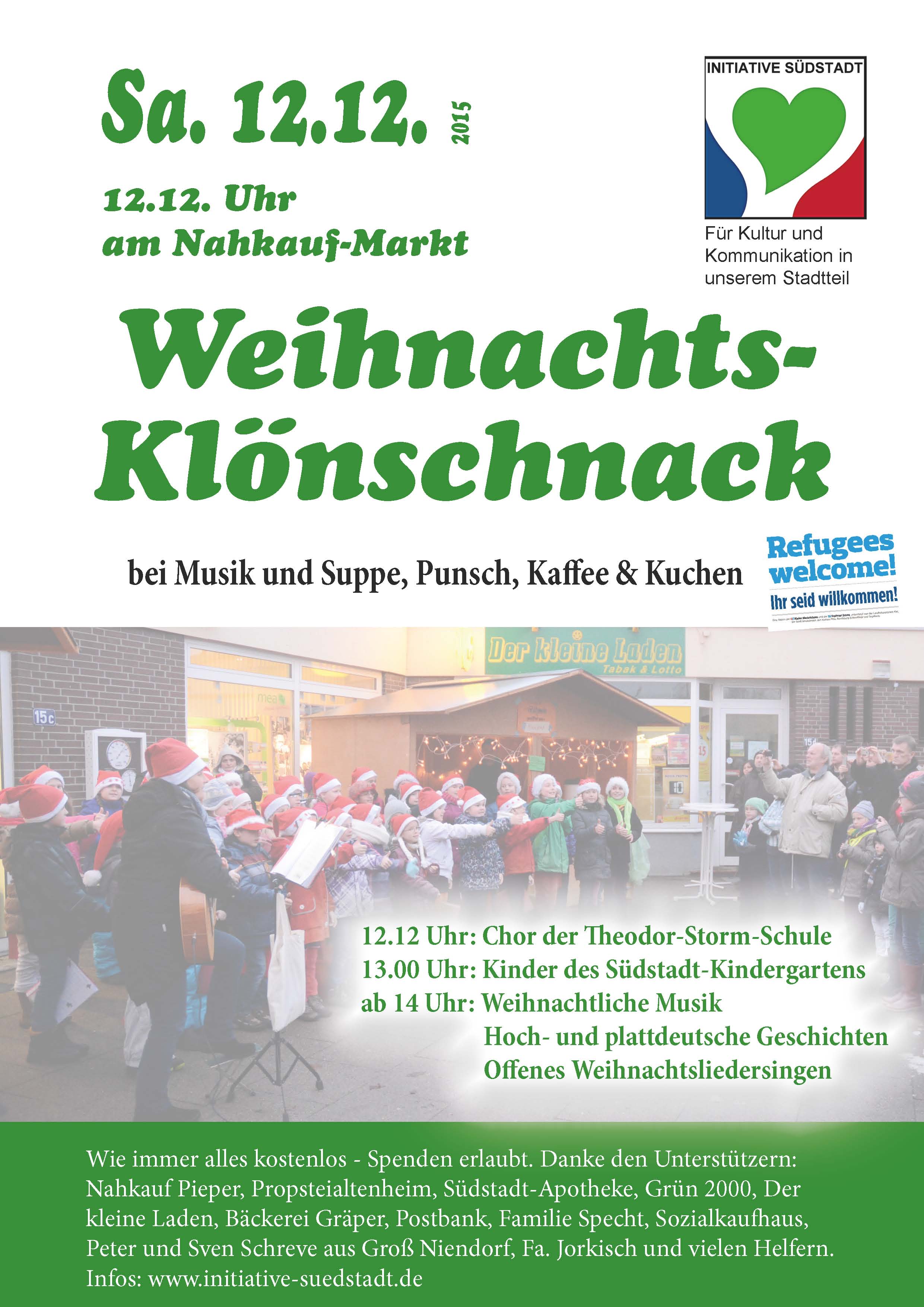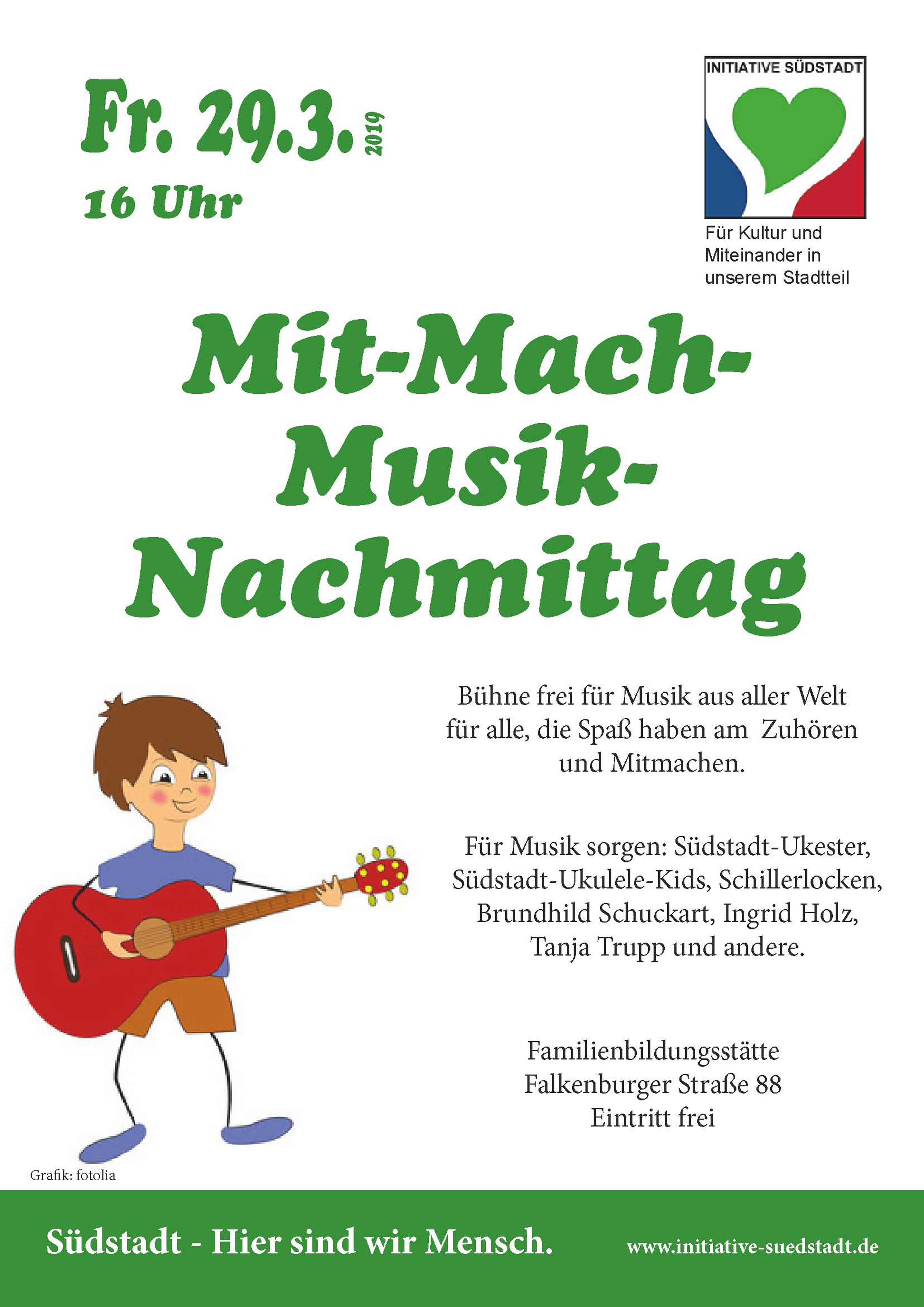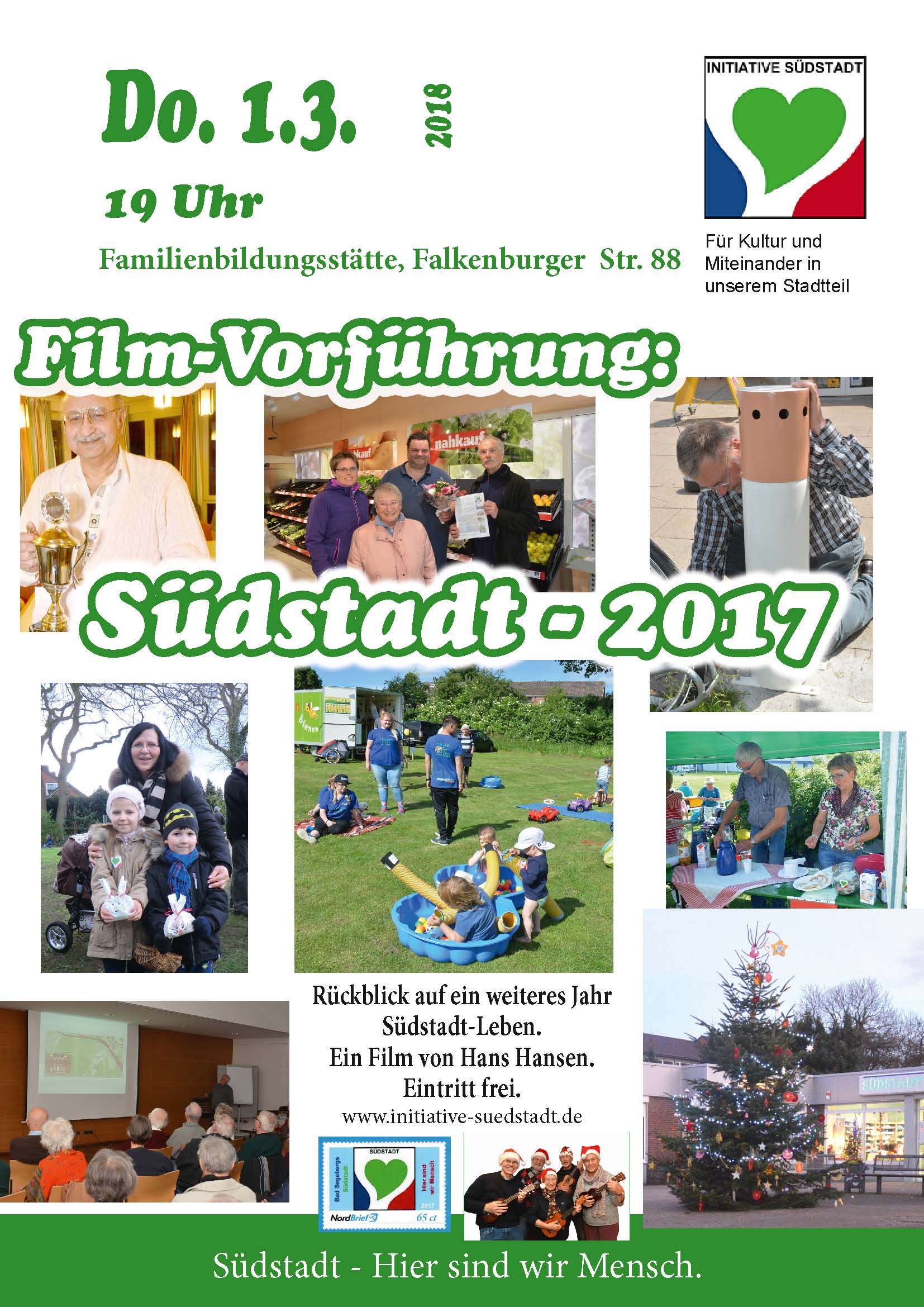 Veranstaltungen: "Südstadt-Treffen" An jedem ersten Dienstag im Monat ab 19.30 Uhr: im Familienzentrum, Falkenburger Straße 92. Aktive Leute kennen lernen und Ideen für unseren Stadtteil aushecken. NEU: Gesunde Ernährung und Gesunder Lebensstil leicht gemacht. An jedem letzten Dienstag im Monat ab 18.30 Uhr. "Fofftein" - Der Plattdeutsch-Nachmittag und An jedem 3. Sonnabend im Monat von 15 bis 17 Uhr im Familienzentrum, Falkenburger Straße 92. I Männerfrühstück an jedem 1. Sonntag im Monat ab 10 Uhr im Südstadt-Familienzentrum, Falkenburger Str. 92. Wollmäuse, Handarbeiten mit Christel Bornkopp Singen mit Ingrid Holz Südstadt-Ukester: